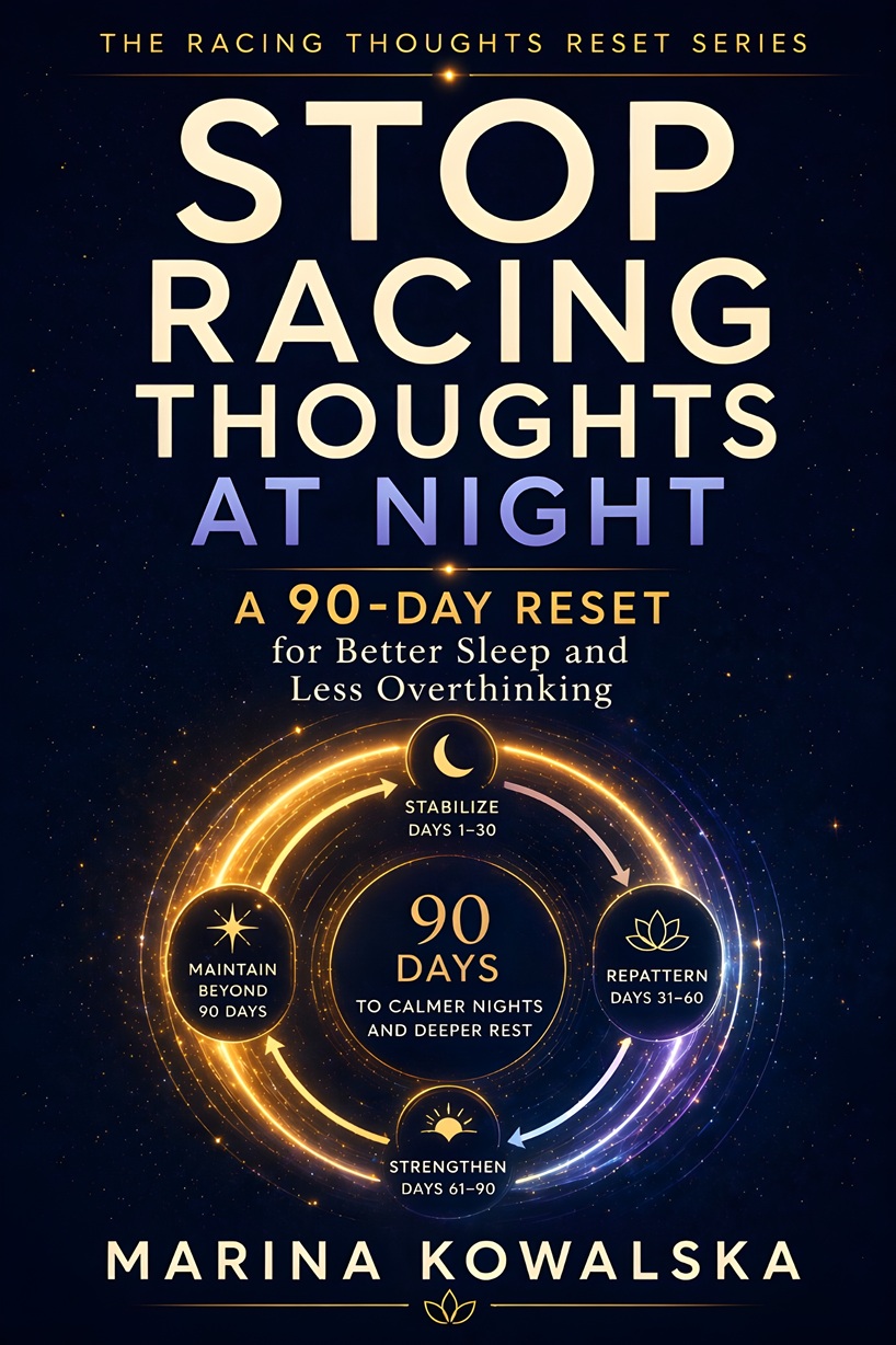 In Stop Racing Thoughts at Night, Marina Kowalska walks you through a calm, practical 90-day reset designed to help you reduce bedtime overthinking, lower nighttime urgency, and build a more reliable path toward better sleep. Instead of asking you to become perfect, this book helps you create lasting change through simple repetition, realistic routines, and supportive responses you can actually use in real life.